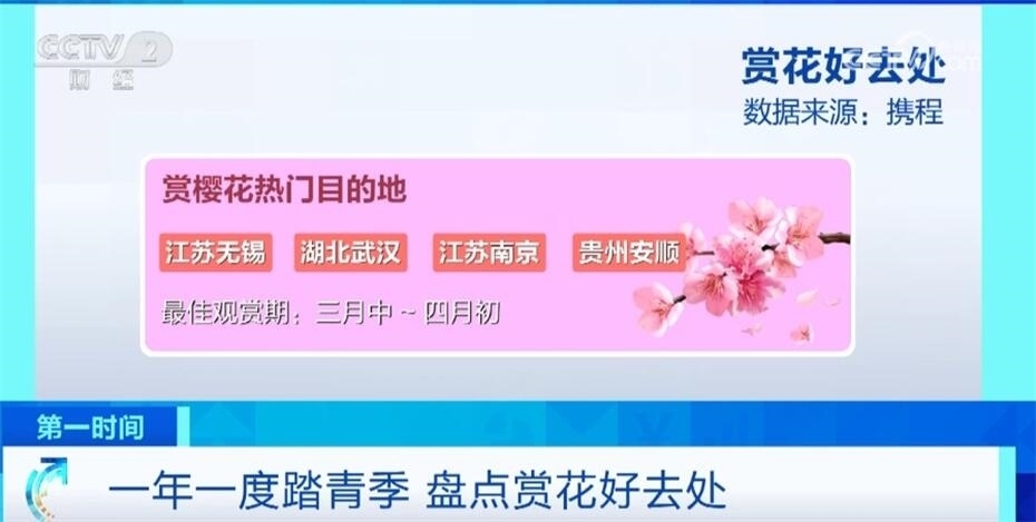 平臺(tái)數(shù)據(jù)顯示,3月以來,“賞花”相關(guān)門票訂單量環(huán)比增長超320%。前五名搜索城市分別是成都、重慶、北京、上海、武漢。