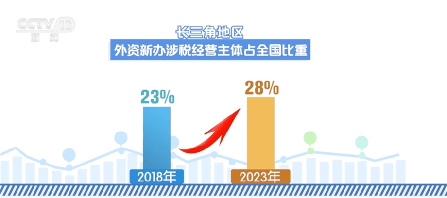 此外,長三角地區(qū)不斷擴大制度性開放水平,推動構建優(yōu)良營商環(huán)境,在吸引外資方面保持優(yōu)勢。稅收數據顯示,長三角地區(qū)外資新辦涉稅經營主體占全國比重由2018年的23%提升至2023年的28%。其中,2019—2023年,吸引共建“一帶一路”國家來長三角投資主體超過8600戶,占共建“一帶一路”國家來我國投資涉稅經營主體數量近50%。