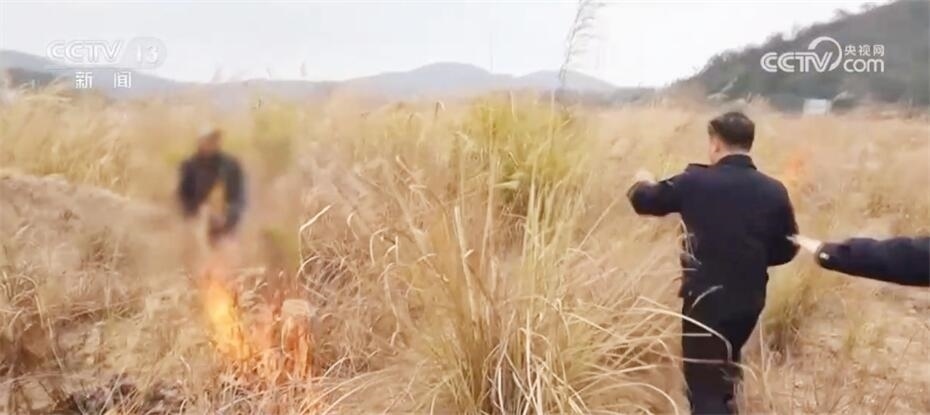 抵達(dá)現(xiàn)場(chǎng)后消防人員看到,一個(gè)村民正在林區(qū)附近邊吸煙邊焚燒雜草。現(xiàn)場(chǎng)以冬茅草等易燃燒的植被為主,旁邊就是林區(qū),一旦起風(fēng),火勢(shì)可能會(huì)失控蔓延引發(fā)山火。