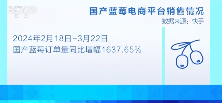 隨著短視頻打卡、直播帶貨、線上拼團(tuán)等模式的興起,通過電商平臺購買藍(lán)莓的消費者也出現(xiàn)爆發(fā)式增長。某電商平臺數(shù)據(jù)顯示,今年春節(jié)以來(2月18—3月22日),國產(chǎn)藍(lán)莓的訂單量同比增幅1637.65%。
