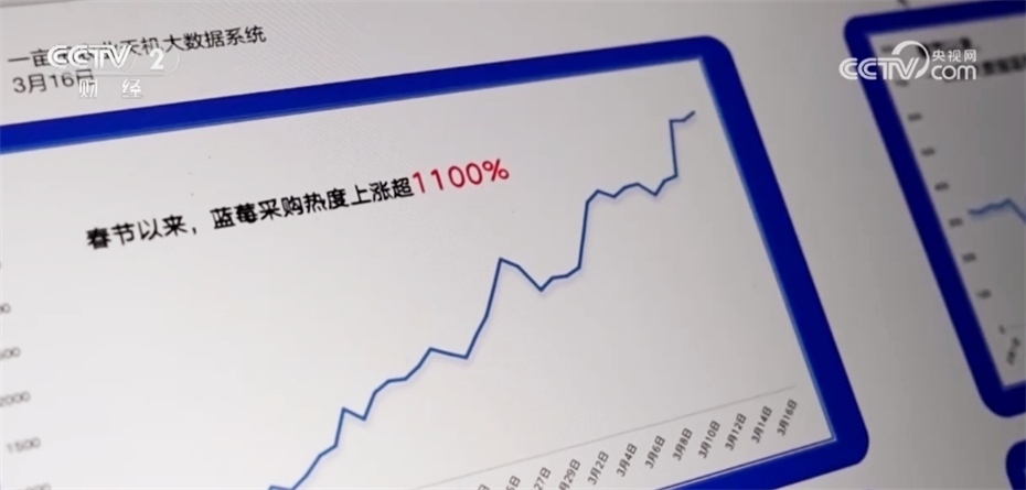 一個農(nóng)產(chǎn)品交易平臺的數(shù)據(jù)顯示,春節(jié)以來,他們平臺的藍(lán)莓品類采購熱度上漲超過11倍。