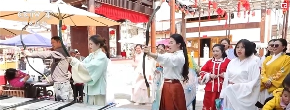 在四川遂寧市大英縣卓筒井鎮(zhèn),1.2萬畝桃花競相綻放,當(dāng)?shù)嘏e行桃花美食春游季活動(dòng),引來各地游客“打卡”。在管咸市街區(qū),體驗(yàn)蹴鞠、飛花令等宋代元素活動(dòng),品嘗長桌宴。卓筒井鎮(zhèn)擁有首批國家級(jí)非物質(zhì)文化遺產(chǎn)“井鹽深鉆汲制技藝”,當(dāng)?shù)貙⒈彼蔚闹汽}文化與發(fā)展二十多年的甜桃產(chǎn)業(yè)“穿越”組合,打造出遂寧鄉(xiāng)村振興精品示范村“宋井桃源”,讓村民吃上了“旅游飯”。
