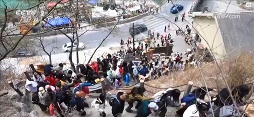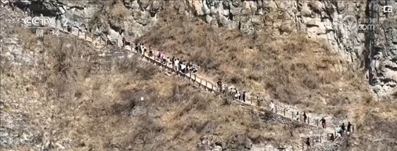 排隊爬山 戶外徒步帶火“懸崖上的村莊”