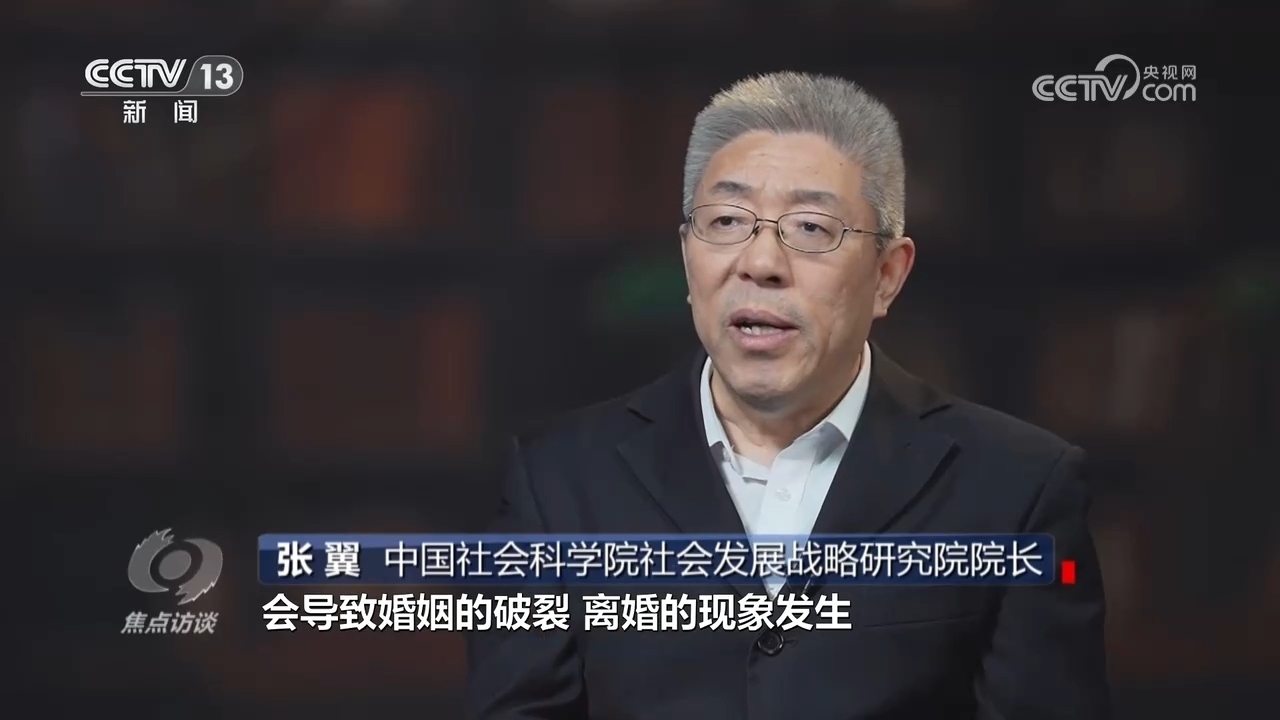 中國社科院社會(huì)發(fā)展戰(zhàn)略研究院院長張翼:“增加夫妻雙方的矛盾以后,會(huì)導(dǎo)致婚姻破裂、離婚現(xiàn)象發(fā)生,導(dǎo)致離婚率居高不下;第二,往往導(dǎo)致兩個(gè)親家之間互不往來,原來存在的家庭網(wǎng)斷裂了?!?