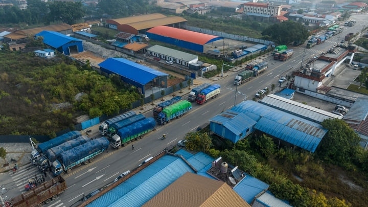 ?云南省德宏州隴川縣章鳳口岸等待通關(guān)的貨車(2023年12月3日攝)。新華社發(fā) 桂金再攝