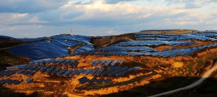 在昆明市石林縣北大村,由23萬塊光伏板組成的56個光伏發(fā)電方陣形成一道獨(dú)特景觀。由國家電投云南國際電力投資有限公司建設(shè)的這個光伏電站,年發(fā)綠色電能達(dá)7800萬度。