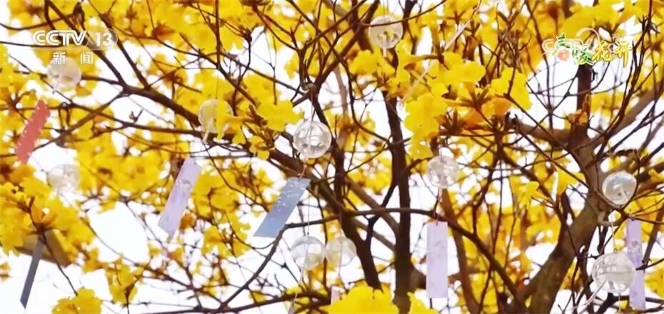 這幾天,在廣西梧州市萬秀區(qū)的城東鎮(zhèn),滿山絢爛黃燦,風(fēng)鈴花密密匝匝地綻放在梢頭,在陽光的照耀下顯得格外亮眼。