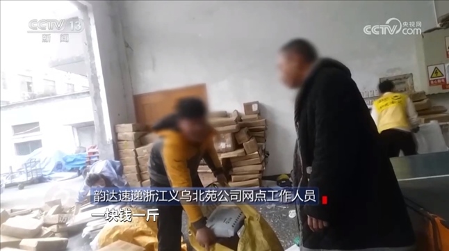 那么,涉事公司的快遞網(wǎng)點(diǎn)到底存不存在這種情況呢?記者進(jìn)行了實(shí)地探訪。在快遞網(wǎng)點(diǎn)的退件區(qū),現(xiàn)場有穿著“北苑韻達(dá)”字樣服裝的工作人員正在作業(yè)。工作人員告訴記者,退件用車?yán)?,一元錢一斤賣掉。