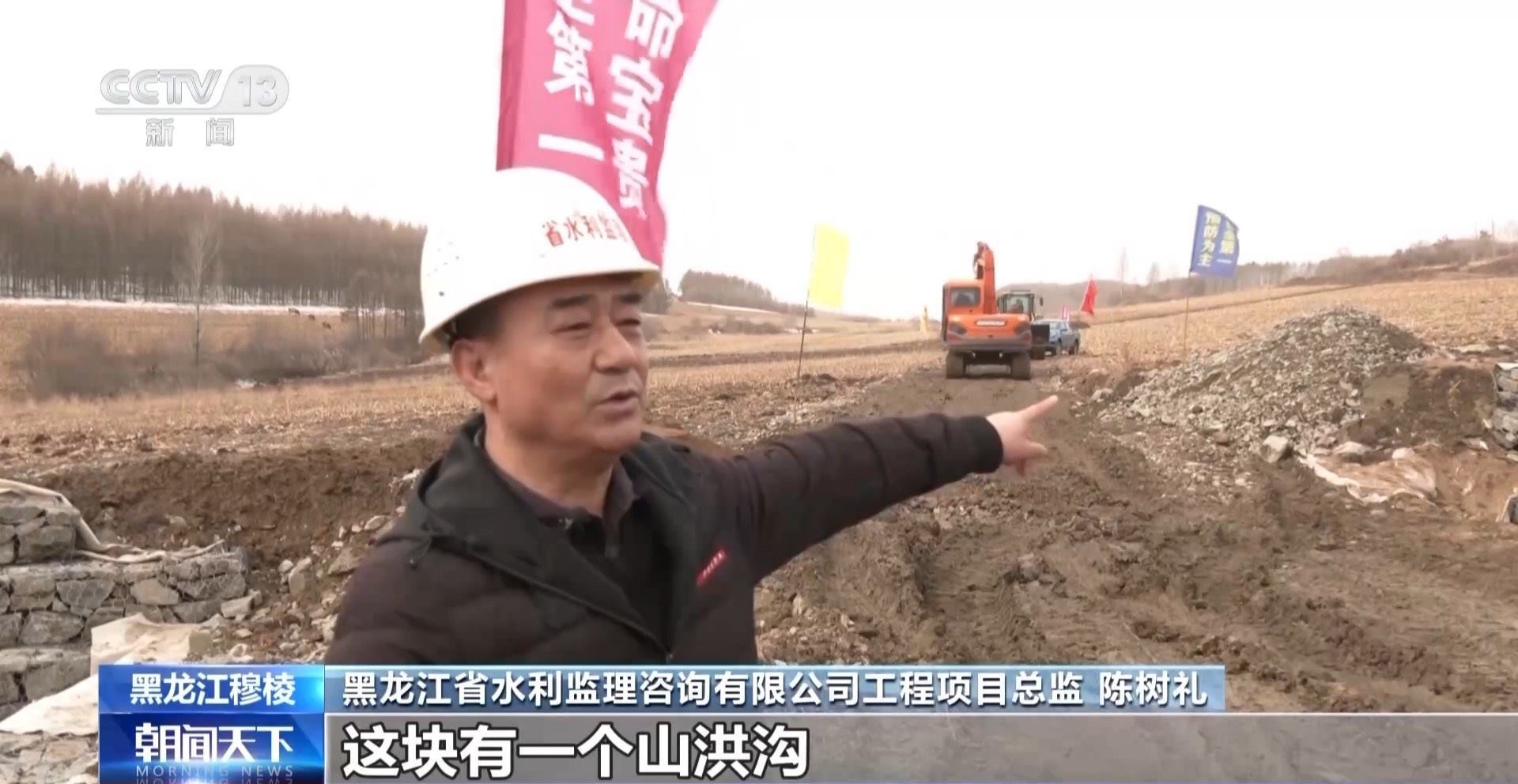 黑龍江省水利監(jiān)理咨詢有限公司工程項(xiàng)目總監(jiān) 陳樹(shù)禮:這塊有一個(gè)山洪溝,水土流失非常嚴(yán)重,通過(guò)項(xiàng)目把這個(gè)(地方)用石籠進(jìn)行護(hù)砌,保證土地面積不受沖刷。