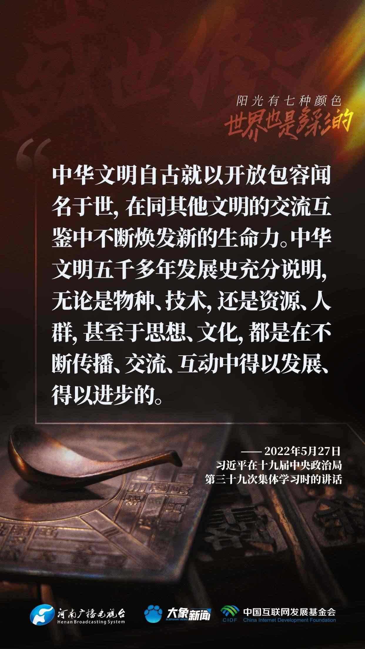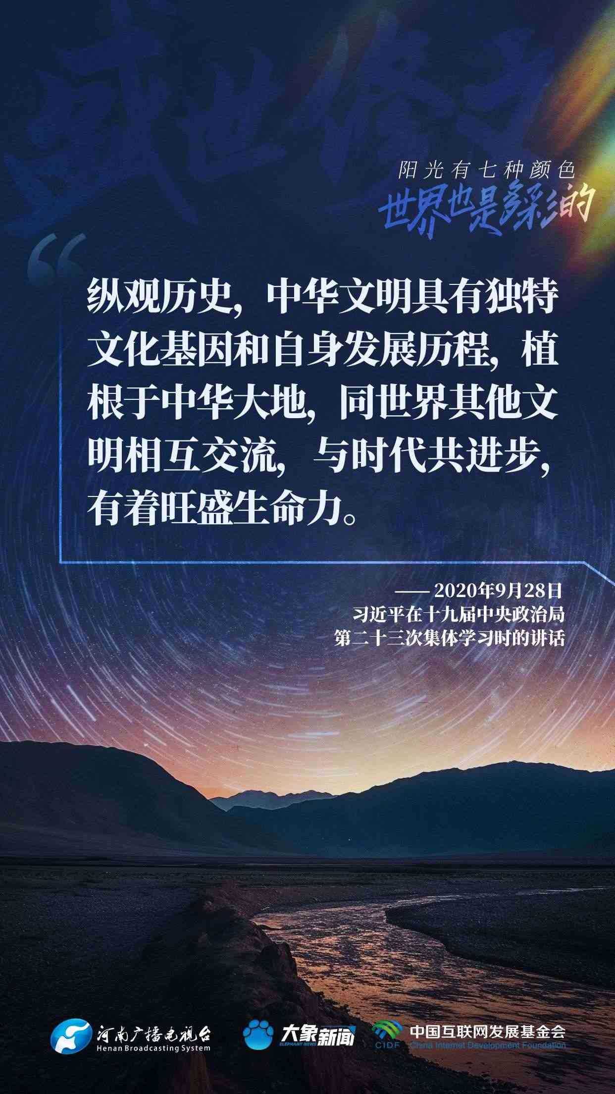 今天推出:習近平文化思想金句之《盛世修文|陽光有七種顏色,世界也是多彩的》