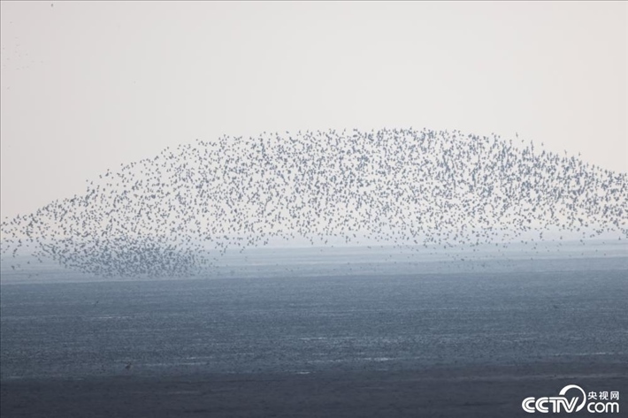 遼寧丹東:候鳥遷徙形成壯觀“鳥浪”。