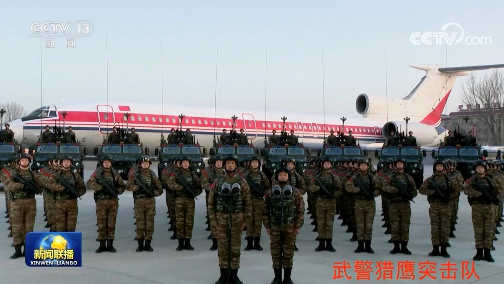 △2023年1月18日,習(xí)近平主席在北京八一大樓以視頻方式檢查部隊(duì)?wèi)?zhàn)備工作,親切慰問(wèn)有關(guān)部隊(duì)。這是武警“獵鷹突擊隊(duì)”在進(jìn)行匯報(bào)。