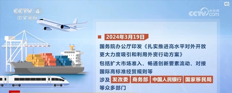 2024年3月19日,國(guó)務(wù)院辦公廳印發(fā)《扎實(shí)推進(jìn)高水平對(duì)外開放 更大力度吸引和利用外資行動(dòng)方案》,包括擴(kuò)大市場(chǎng)準(zhǔn)入、暢通創(chuàng)新要素流動(dòng)、對(duì)接國(guó)際高標(biāo)準(zhǔn)經(jīng)貿(mào)規(guī)則等,涉及國(guó)家發(fā)展改革委、商務(wù)部、中國(guó)人民銀行、國(guó)家移民局等眾多部門。