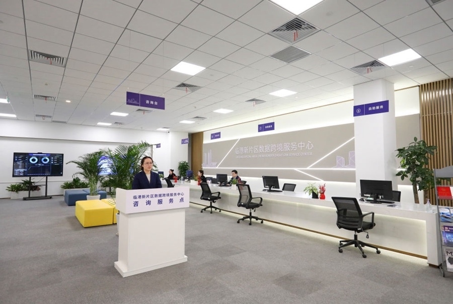 中國(上海)自由貿(mào)易試驗(yàn)區(qū)臨港新片區(qū)數(shù)據(jù)跨境服務(wù)中心內(nèi)景。該中心4月7日啟用運(yùn)營,致力于為數(shù)據(jù)處理者提供全方位、全流程數(shù)據(jù)跨境服務(wù),包括材料受理、業(yè)務(wù)咨詢等,在臨港新片區(qū)打造數(shù)據(jù)跨境流動的綠色通道(2024年4月9日攝)。