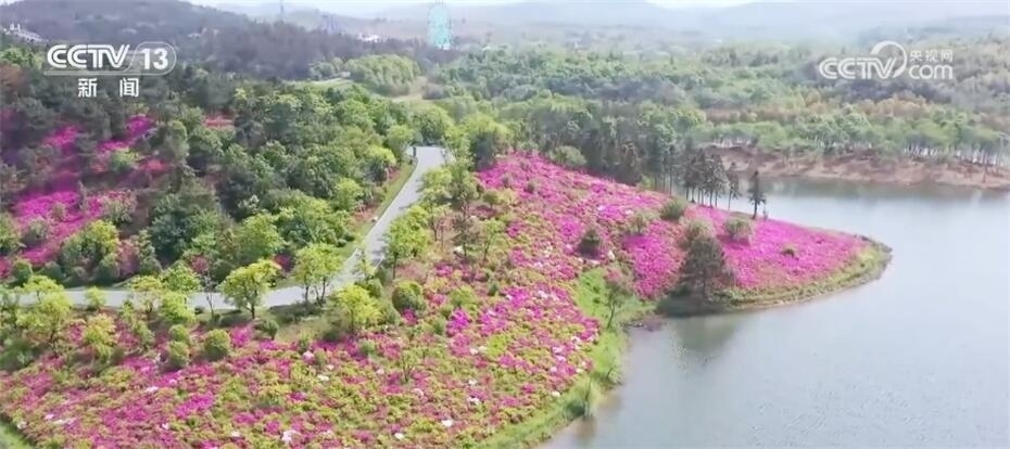 四月芳菲,春光正盛。在江蘇南京銀杏湖,800萬(wàn)株杜鵑花迎著明媚的春光次第綻放。遠(yuǎn)遠(yuǎn)望去,連片的杜鵑花點(diǎn)綴著朱紅、淡粉與純白,密密匝匝擁在一起,把湖光山景染成了斑斕的畫卷。園區(qū)里的千畝杜鵑花花期將持續(xù)到五月初。