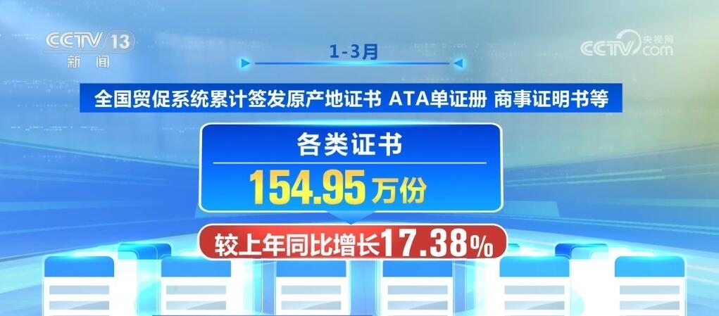 1—3月,全國貿(mào)促系統(tǒng)累計簽發(fā)原產(chǎn)地證書、ATA單證冊、商事證明書等各類證書154.95萬份,較上年同比增長17.38%。其中,全國貿(mào)促系統(tǒng)非優(yōu)惠原產(chǎn)地證書簽證金額共計849.31億美元,同比增長2.47%;全國貿(mào)促系統(tǒng)優(yōu)惠原產(chǎn)地證書簽證金額共計161.21億美元,同比增長4.73%。