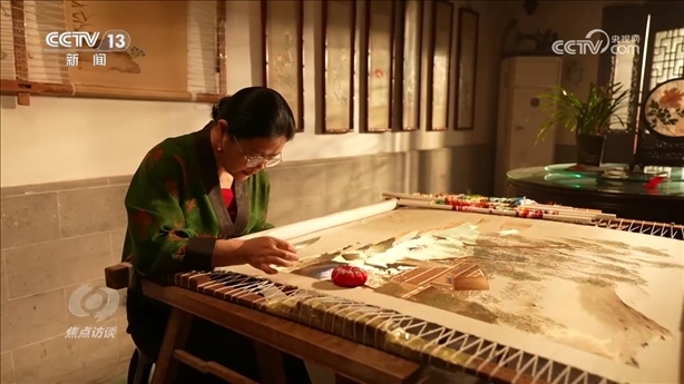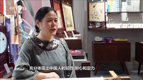盧建英:“當(dāng)時(shí)我在繡一幅《桃花太平鳥圖》,習(xí)近平總書記走到了我的繃架前。他說(shuō)你好,很親切,很和藹,看得非常仔細(xì)。他說(shuō)中華文化的傳承力有多強(qiáng),通過(guò)這個(gè)蘇繡可以看出來(lái),像這樣的功夫充分體現(xiàn)出中國(guó)人的韌性、耐心和定力,這是中華民族精神的一部分,能得到總書記的認(rèn)可,真的是倍感榮耀。”