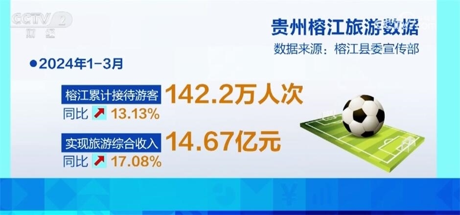 在“村超”流量的帶動下,2024年1—3月榕江累計接待游客142.2萬人次,同比增長13.13%,實現(xiàn)旅游綜合收入14.67億元,同比增長17.08%。