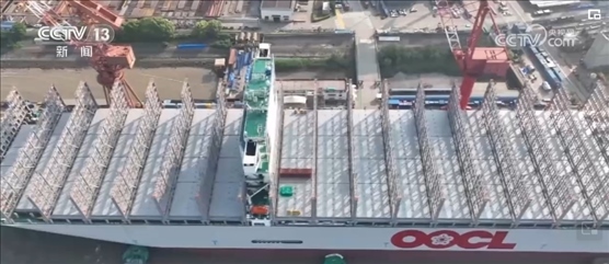 央視網(wǎng)消息:5月7日,又一艘全球最大裝箱量級(jí)的集裝箱船在海事部門(mén)的護(hù)航下,從長(zhǎng)江江蘇南通段出江試航。此次,試航集裝箱船長(zhǎng)399.99米、寬61.3米,滿(mǎn)載時(shí)相當(dāng)于240多列火車(chē)的裝載量。