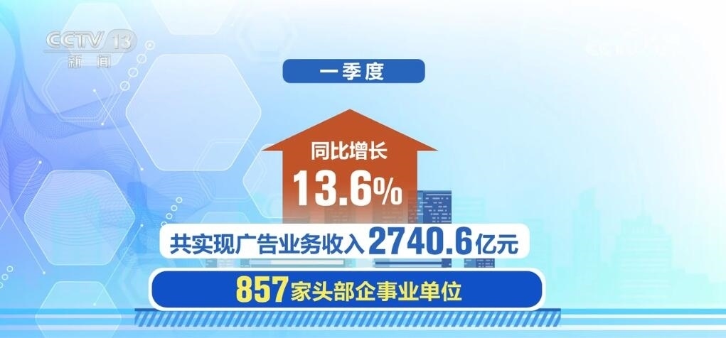 市場(chǎng)監(jiān)管總局公布數(shù)據(jù)顯示,一季度,857家頭部企事業(yè)單位共實(shí)現(xiàn)廣告業(yè)務(wù)收入2740.6億元,同比增長13.6%。