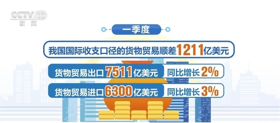 一季度,我國國際收支口徑的貨物貿易順差1211億美元,其中,貨物貿易出口7511億美元,同比增長2%;進口6300億美元,同比增長3%。一季度,我國對外股權性質直接投資凈流出257億美元;來華股權性質直接投資凈流入190億美元。我國國際收支保持基本平衡,貨物貿易保持順差,雙向跨境資金流動保持合理有序。