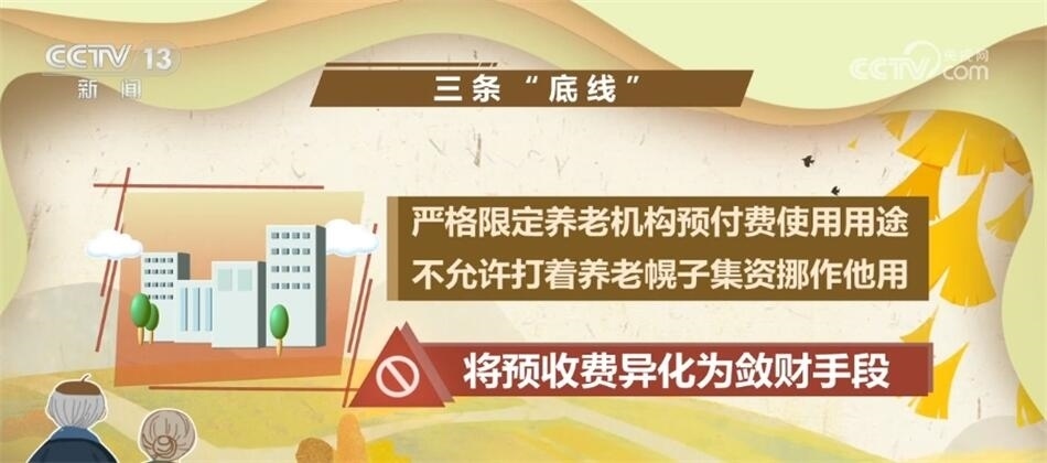 發(fā)布會上,民政部相關負責人介紹,《意見》還明確了三條安全“底線”:第一條是嚴禁養(yǎng)老機構超過床位供給能力“一床多賣”;第二條是嚴格限定養(yǎng)老機構預付費使用用途,不允許打著養(yǎng)老幌子集資挪作他用,將預收費異化為斂財手段;第三條是明確不得以承諾還本付息、給予其他投資回報等方式,誘導老年人及家屬交費,這是典型的非法集資行為。