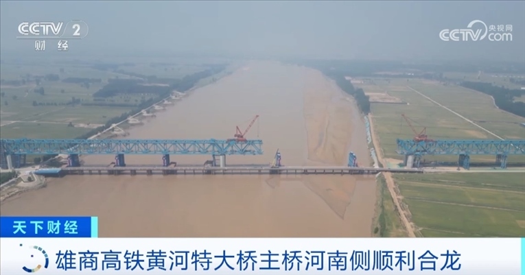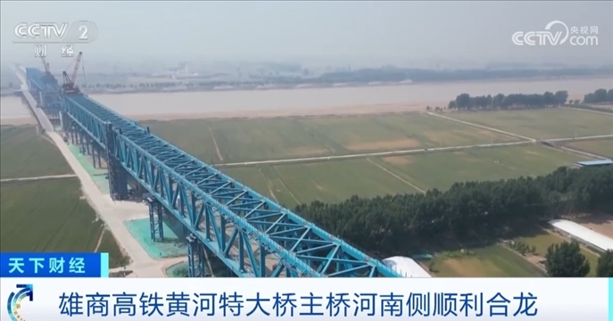 央視網(wǎng)消息:雄商高鐵是京雄商高鐵的一段,連接河北省雄安新區(qū)和河南商丘。5月18日,雄商高鐵黃河特大橋河南側(cè)的鋼桁梁架設(shè)施工全部完成,這標(biāo)志著主橋河南側(cè)已經(jīng)順利合龍。截至目前,全橋鋼桁梁架設(shè)的進(jìn)度超過了87%,預(yù)計主橋全橋7月份合龍。