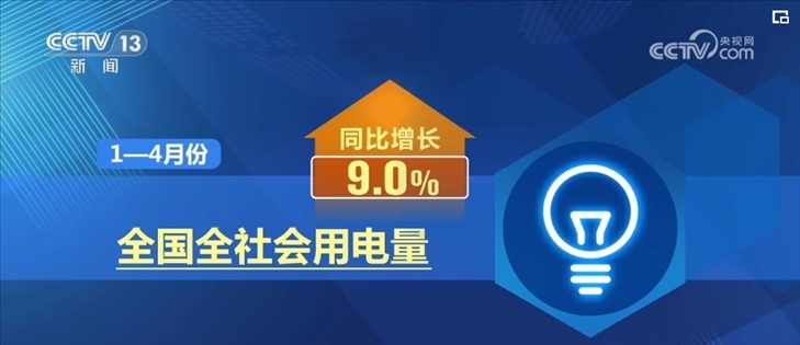 1—4月份,全國全社會用電量同比增長9.0%。分產(chǎn)業(yè)看,一產(chǎn)、二產(chǎn)、三產(chǎn)和居民生活用電量分別增長10.1%、7.5%、13.5%和10.8%。分地區(qū)看,11個省(區(qū)、市)用電增速超過10%。4月份,全社會用電量同比增長7.0%。從發(fā)電量看,1—4月份,全國規(guī)上工業(yè)發(fā)電29329億千瓦時,同比增長6.1%。4月份,發(fā)電6901億千瓦時,增長3.1%。