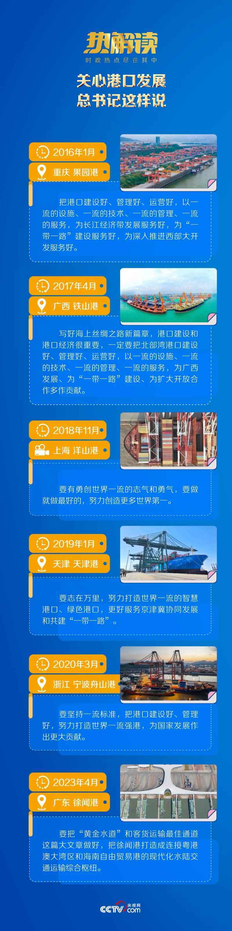 從內(nèi)河航運(yùn)的黃金水道到國(guó)際航運(yùn)的港通四海,總書(shū)記多次在考察行程中關(guān)注我國(guó)沿海沿江港口建設(shè),精心謀劃推進(jìn)世界一流強(qiáng)港建設(shè)工作。
