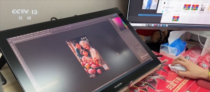 AI畫師鄧博正在設計一幅母親節(jié)的主題海報。如果使用傳統(tǒng)手繪加圖片編輯方式,這樣一張海報鄧博至少要做上兩到三天。不過現在,使用AI進行輔助生成,從接到需求到交付出多張不同風格的高質量海報,鄧博只用了不到10分鐘的時間。