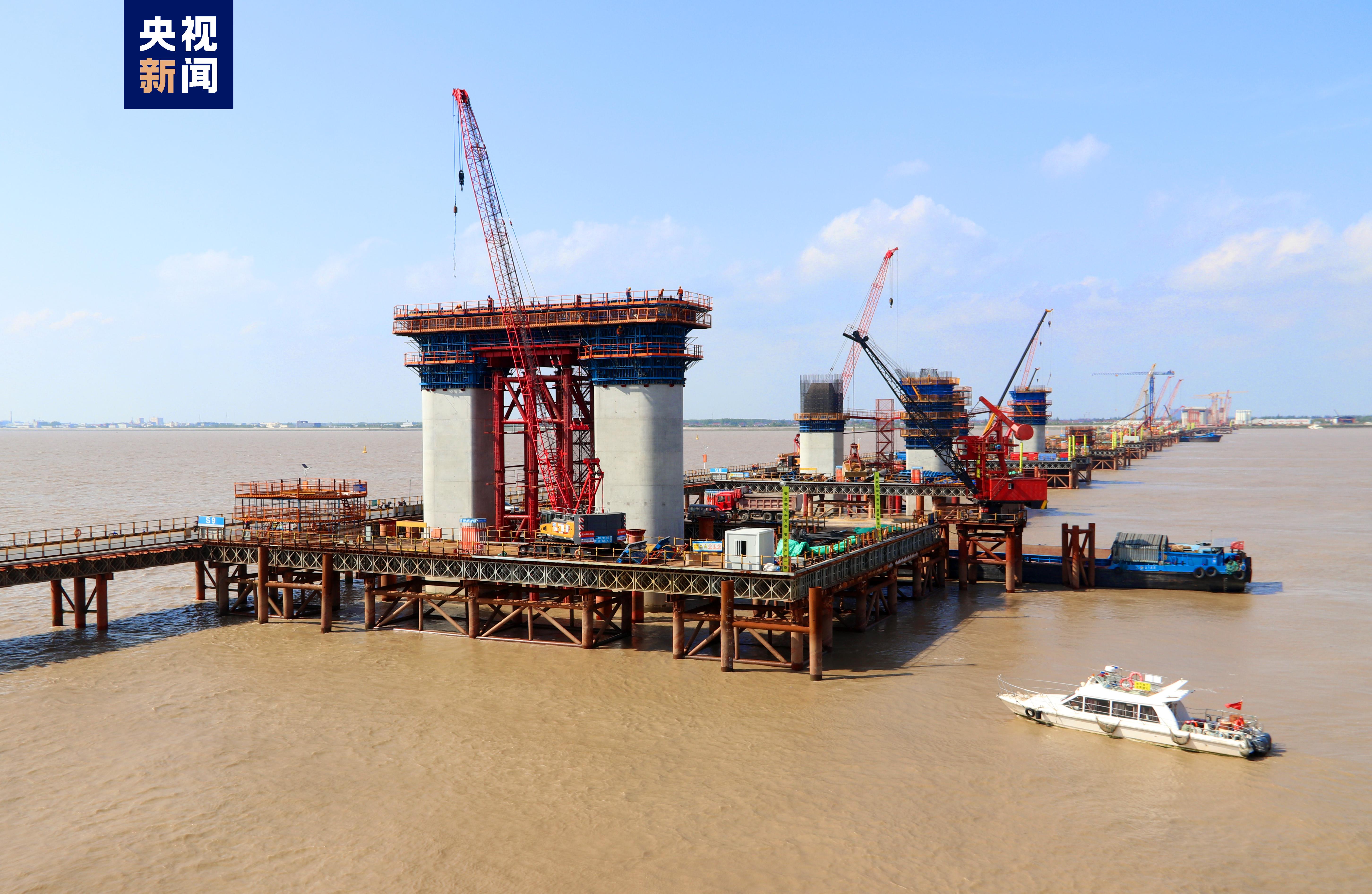 5月26日,隨著最后一車混凝土澆筑,滬渝蓉高鐵崇啟公鐵長江大橋主橋S9號墩蓋梁成功澆筑,標(biāo)志著大橋水中首個門式橋墩建成。據(jù)介紹,S9號墩蓋梁橫橋向長30.5米、縱橋向?qū)?.0米、高4.0米,混凝土方量652.95立方米,采用落地鋼管支架一次澆筑成型。