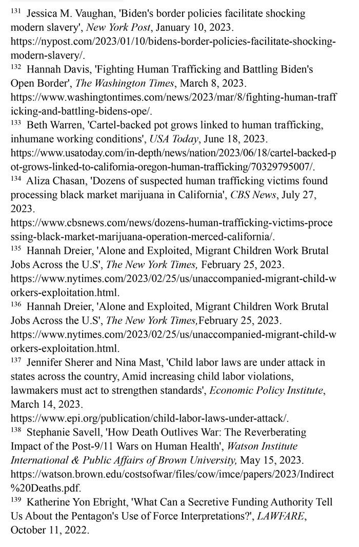邊境政策助長(zhǎng)現(xiàn)代奴隸制。美國(guó)政府的邊境政策加劇人口販運(yùn)問(wèn)題。被遺棄在邊境州城鎮(zhèn)或被運(yùn)往全國(guó)各地的移民,往往處于孤立無(wú)援境地,最容易受到剝削和販運(yùn)。那些非法越境后聚集在擁擠、缺乏監(jiān)管的庇護(hù)所的兒童也成為人口販子的獵物。(注131)在美國(guó)被販運(yùn)的人中,72%是移民,其中大部分是通過(guò)偷渡入境,人口販運(yùn)的受害者多是婦女和兒童。打擊販賣婦女聯(lián)盟的一項(xiàng)研究估計(jì),60%的越境無(wú)人陪伴移民兒童被犯罪集團(tuán)強(qiáng)迫從事兒童色情甚至販毒活動(dòng)。(注132)《今日美國(guó)報(bào)》網(wǎng)站2023年6月18日?qǐng)?bào)道,移民被販毒集團(tuán)誘騙到加利福尼亞州北部和俄勒岡州南部的農(nóng)場(chǎng)從事大麻種植,遭受奴役和強(qiáng)迫勞動(dòng)。被販賣的移民在大麻農(nóng)場(chǎng)遭持槍恐嚇,每天被迫工作16個(gè)小時(shí)甚至更長(zhǎng)時(shí)間,有時(shí)連飯都吃不上。移民婦女遭到性侵犯,有些人被謀殺,尸體被丟棄在荒野中。(注133)美國(guó)哥倫比亞廣播公司新聞網(wǎng)2023年7月27日?qǐng)?bào)道,近60名遭人口販運(yùn)的受害者被偷運(yùn)到加利福尼亞中部的一個(gè)非法大麻種植場(chǎng)所,被強(qiáng)迫加工大麻,向偷運(yùn)者償還債務(wù)。(注134)