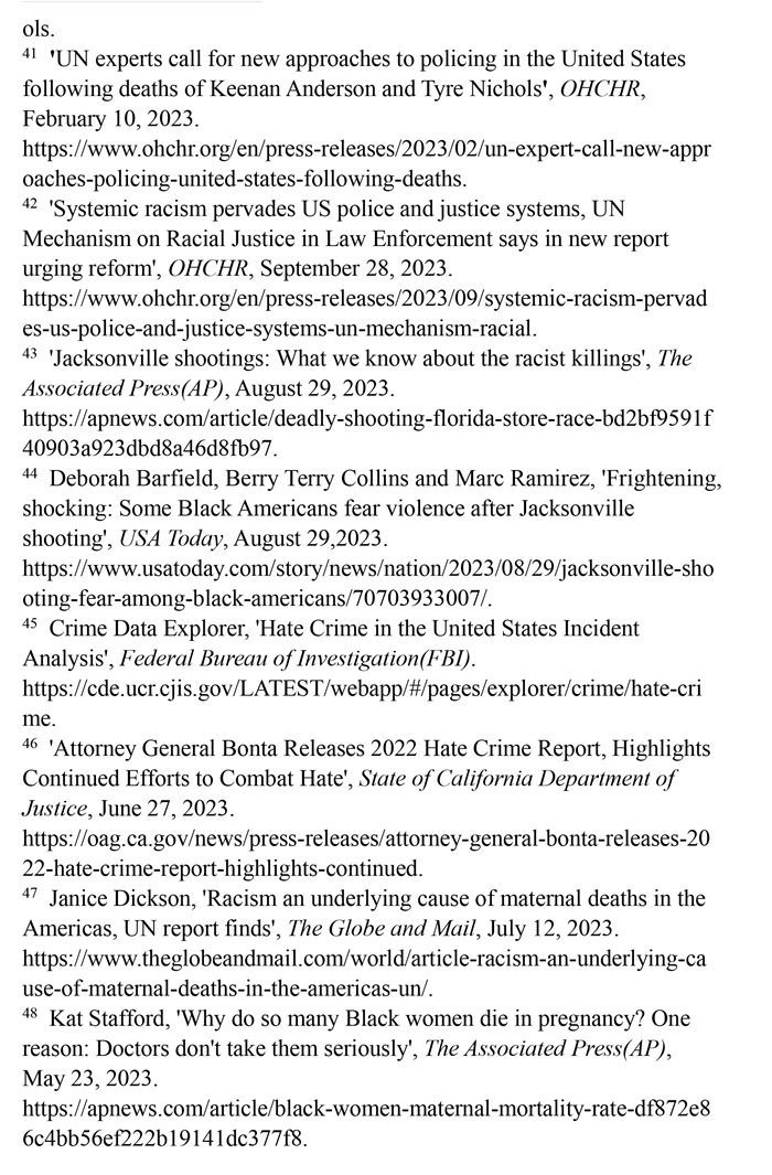 非洲裔在執(zhí)法領(lǐng)域面臨嚴(yán)重種族歧視。2023年1月3日,洛杉磯31歲的非洲裔男子基南·安德森涉嫌交通肇事,警方在制服他的過(guò)程中使用電擊槍擊中其6次,致其心臟病發(fā),送醫(yī)不治身亡。(注39)2023年1月7日,田納西州孟菲斯市的警察以“魯莽駕駛”為由將29歲的非洲裔男子泰爾·尼科爾斯攔下,并對(duì)其進(jìn)行長(zhǎng)達(dá)數(shù)分鐘的殘忍毆打。三天后尼科爾斯因傷勢(shì)過(guò)重去世,而事后的調(diào)查無(wú)法證實(shí)警察關(guān)于其“魯莽駕駛”的說(shuō)法。(注40)這兩起非洲裔遭受警察暴力執(zhí)法身亡案例引發(fā)多名聯(lián)合國(guó)專家的高度關(guān)注。專家們強(qiáng)調(diào),在兩起事件中,警察使用的武力違反保護(hù)生命權(quán),禁止酷刑和其他殘忍、不人道或有辱人格待遇或處罰的國(guó)際準(zhǔn)則,也不符合聯(lián)合國(guó)《執(zhí)法人員行為守則》和《執(zhí)法人員使用武力和火器的基本原則》。(注41)聯(lián)合國(guó)人權(quán)理事會(huì)在執(zhí)法工作中推進(jìn)種族正義和平等的國(guó)際獨(dú)立專家機(jī)制在對(duì)美國(guó)實(shí)地訪問(wèn)后發(fā)布報(bào)告指出,針對(duì)非洲裔的系統(tǒng)性種族主義已經(jīng)滲透到美國(guó)警察隊(duì)伍和刑事司法系統(tǒng)。非洲裔被警察殺害的可能性是白人的3倍,被監(jiān)禁的可能性是白人的4.5倍。在每年1000多起警察殺人案件中,只有1%的涉事警察被指控。報(bào)告警告說(shuō),美國(guó)如果不按照國(guó)際標(biāo)準(zhǔn)改革警察使用武力的規(guī)則,許多殺戮將繼續(xù)發(fā)生。(注42)