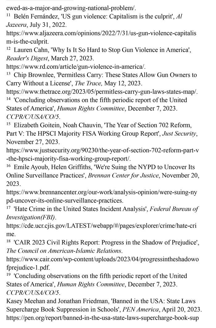 政府濫用權(quán)力監(jiān)控公民隱私。聯(lián)合國(guó)人權(quán)事務(wù)委員會(huì)指出,美國(guó)《涉外情報(bào)監(jiān)視法》第702條的范圍過(guò)于寬泛,該法不僅允許美國(guó)執(zhí)法人員監(jiān)視外國(guó)人的電子通信,執(zhí)法人員還可能利用法律漏洞在沒(méi)有搜查令的情況下獲取大量美國(guó)公民的通訊信息(即“后門搜查”),并且缺乏明確透明的監(jiān)督機(jī)制。(注14)美國(guó)眾議院情報(bào)委員會(huì)2023年11月16日發(fā)布的報(bào)告顯示,美國(guó)聯(lián)邦調(diào)查局將《涉外情報(bào)監(jiān)視法》第702條規(guī)定轉(zhuǎn)用于進(jìn)行國(guó)內(nèi)監(jiān)控,“廣泛而持續(xù)地”監(jiān)控國(guó)會(huì)議員、國(guó)會(huì)競(jìng)選活動(dòng)捐助者以及反種族主義抗議者的通訊。(注15)布倫南司法中心網(wǎng)站2023年11月20日?qǐng)?bào)道,十幾年來(lái),紐約警察局濫用社交媒體從事非法活動(dòng),包括監(jiān)視公共集會(huì)、在沒(méi)有證據(jù)的情況下跟蹤公民個(gè)人及其聯(lián)系人等,而這些行為并未受到監(jiān)督和問(wèn)責(zé)。(注16)