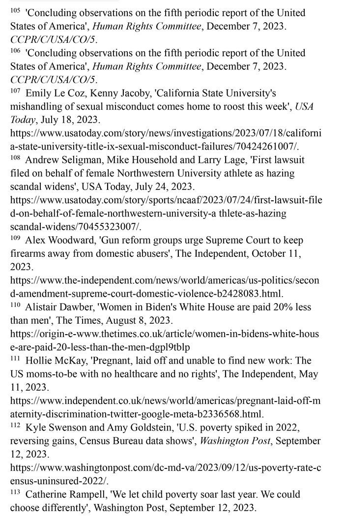 美國(guó)憲法迄今沒(méi)有禁止性別歧視的規(guī)定。職場(chǎng)性別歧視嚴(yán)重,男女收入差距擴(kuò)大。婦女的生命權(quán)和健康權(quán)保障不足。孕產(chǎn)婦死亡率持續(xù)高居發(fā)達(dá)國(guó)家之首,禁止墮胎嚴(yán)重?fù)p害婦女生殖權(quán)利和健康權(quán)。職場(chǎng)、校園等多領(lǐng)域的性暴力層出不窮。兒童的生存權(quán)和發(fā)展權(quán)堪憂。兒童貧困人口激增,大量?jī)和t(yī)療保險(xiǎn)被取消,兒童健康權(quán)受到嚴(yán)重威脅。