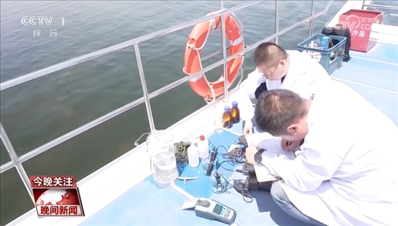 現(xiàn)場(chǎng)水樣監(jiān)測(cè)和分析顯示,水溫是32℃,PH是8.8,電導(dǎo)率是3.03,內(nèi)蒙古自治區(qū)環(huán)境監(jiān)測(cè)總站巴彥淖爾分站副站長(zhǎng)賈國慶介紹,PH和溶解氧都在合理值。