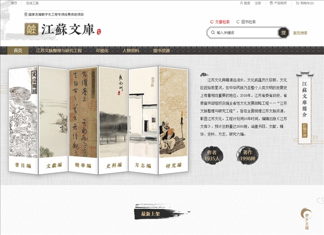 △《江蘇文庫》數(shù)據(jù)庫軟件平臺首頁截圖