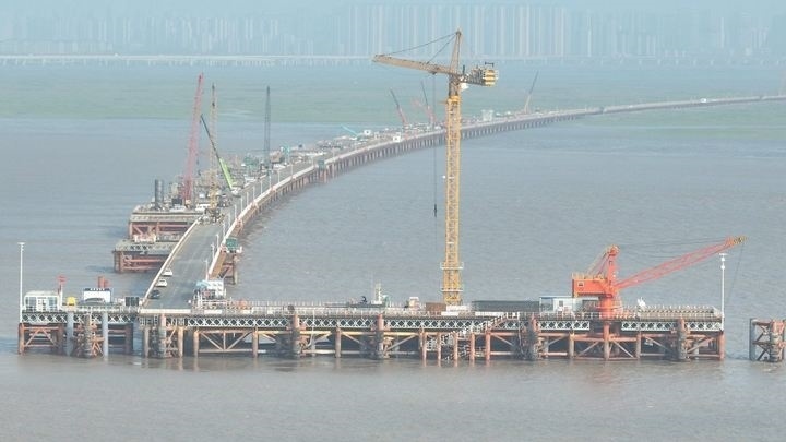 杭州灣南岸,千根樁基正朝海面深處進(jìn)發(fā)。這里是杭州灣跨海鐵路大橋,也是世界上在建長度最長的高速鐵路跨海大橋,這條線路,將串起寧波、嘉興、蘇州、南通等城市,大幅拉近長三角主要城市間的時(shí)空距離。