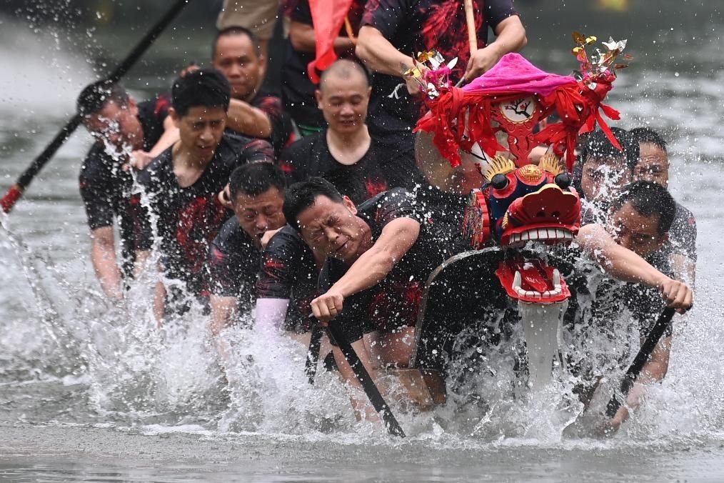 2023年6月22日,村民在杭州西溪國家濕地公園的蔣村龍舟勝會(huì)上劃龍舟。蔣村龍舟勝會(huì)于2011年被列入國家級(jí)非物質(zhì)文化遺產(chǎn)名錄。