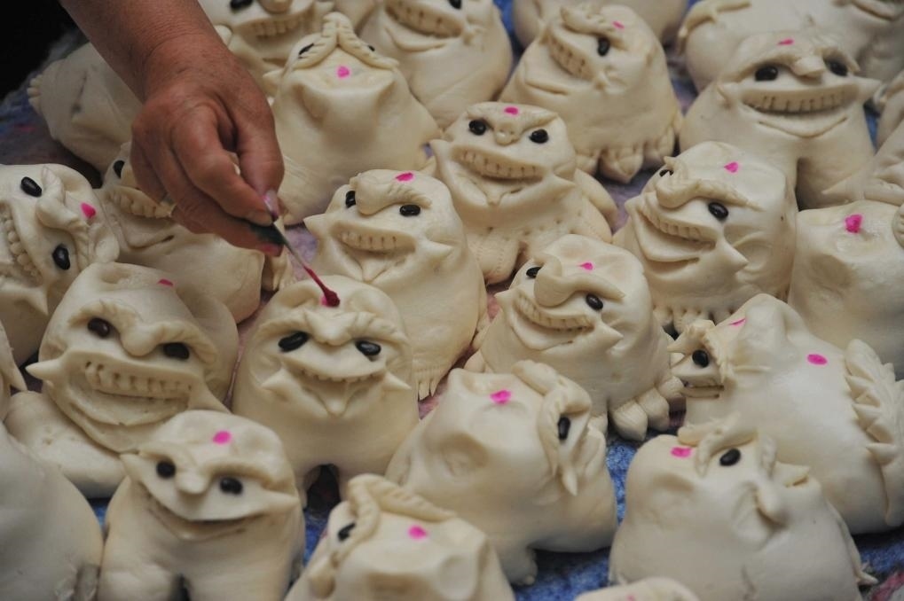 2016年6月7日,在山西晉南運(yùn)城市新絳縣澤掌村一家蒸饃店,一名村民在給蒸好的“老虎饃”“點(diǎn)紅”。端午節(jié)臨近,山西晉南地區(qū)的城鄉(xiāng)居民開始制作或購買老虎造型的晉南花饃“老虎饃”,用來在端午節(jié)敬奉先祖,祈福平安吉祥。晉南花饃已入選國家級(jí)非物質(zhì)文化遺產(chǎn)名錄。