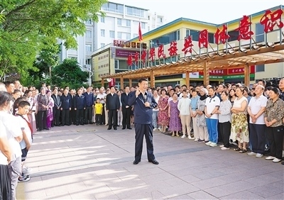 傍晚時分,社區(qū)廣場十分熱鬧,居民們看見總書記來了,紛紛圍攏過來,熱烈鼓掌歡迎。習近平親切地對大家說,時隔4年,我再次來寧夏看望各族干部群眾,見到大家非常高興!中華民族是一個大家庭,各族人民要像石榴籽一樣緊緊抱在一起。要不斷鑄牢中華民族共同體意識,把各族人民的心緊緊連在一起,把各方面的力量廣泛凝聚到一起,共同推進中國式現(xiàn)代化,共襄中華民族偉大復(fù)興的盛舉。