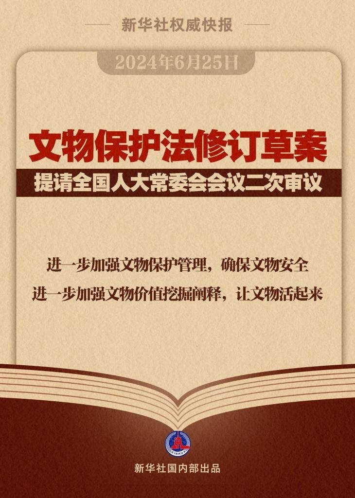 文物保護(hù)法修訂草案6月25日提請全國人大常委會會議二次審議。