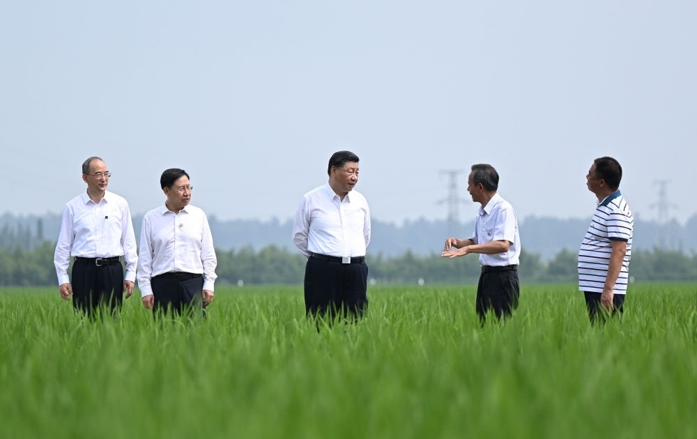 2022年6月8日上午,習近平在四川眉山市東坡區(qū)太和鎮(zhèn)永豐村高標準水稻種植基地考察,了解水稻試驗育種和種植推廣情況。習近平強調(diào):推進農(nóng)業(yè)現(xiàn)代化,既要靠農(nóng)業(yè)專家,也要靠廣大農(nóng)民。要加強現(xiàn)代農(nóng)業(yè)科技推廣應用和技術(shù)培訓,把種糧大戶組織起來,積極發(fā)展綠色農(nóng)業(yè)、生態(tài)農(nóng)業(yè)、高效農(nóng)業(yè)。我們有信心、有底氣把中國人的飯碗牢牢端在自己手中。