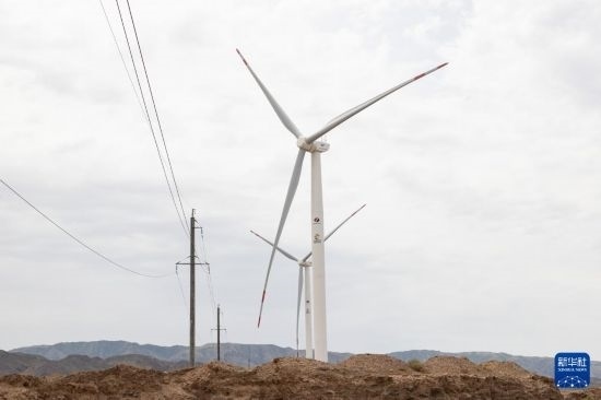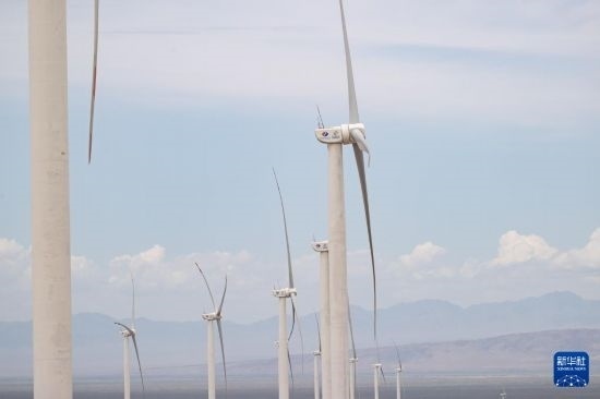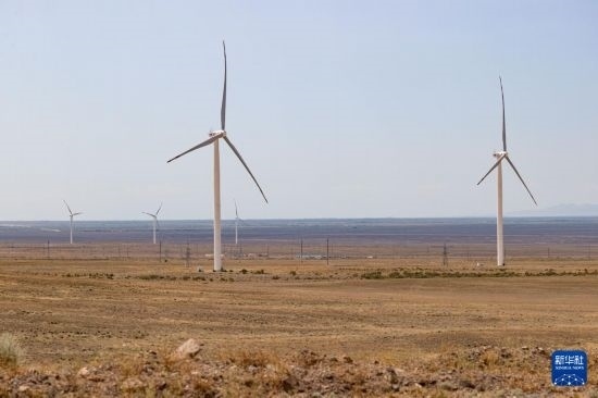 這是6月25日在哈薩克斯坦阿拉木圖州謝列克風(fēng)電場拍攝的風(fēng)機(jī)。白雪騏 攝