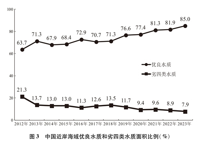 通過深入推進重點海域綜合治理、陸海污染協(xié)同防治,持續(xù)建設(shè)美麗海灣,中國近岸海域水質(zhì)總體改善,2023年優(yōu)良水質(zhì)面積比例較2012年高出21.3個百分點。