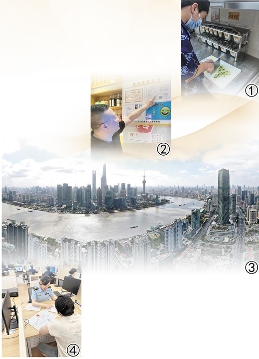 圖①:商戶正在制作“拍黃瓜”。本報記者 季覺蘇攝圖②:商戶展示新證照。 本報記者 張 洋攝圖③:空中俯瞰上海黃浦江兩岸。新華社記者 方 喆攝 圖④:企業(yè)工作人員在上海市閔行區(qū)市場監(jiān)管局政務服務窗口申請辦理食品經(jīng)營許可證。許雪蓮攝