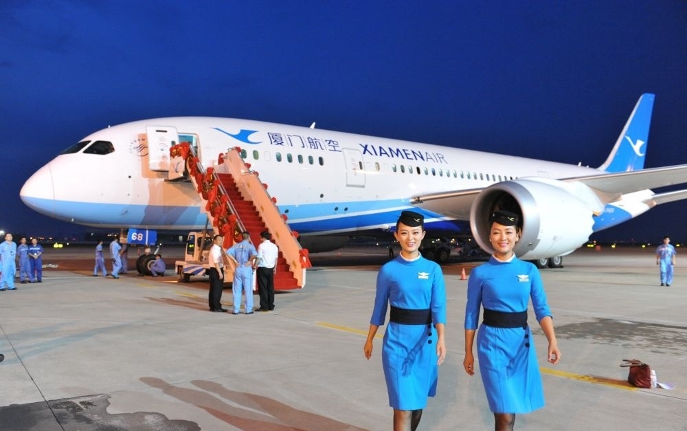廈航迎接公司首架波音787飛機(2014年8月31日攝)。新華社記者 林善傳 攝