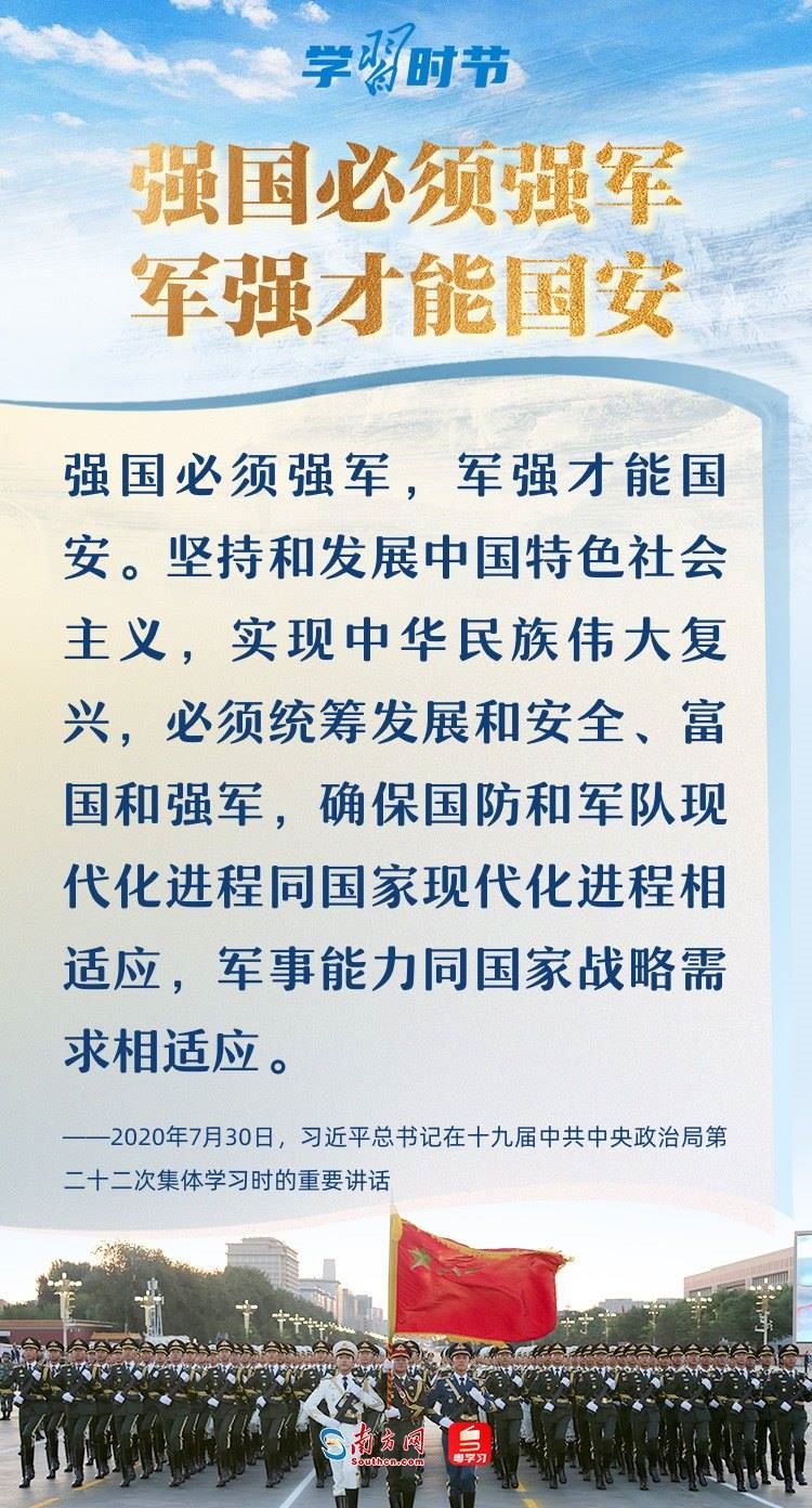 強(qiáng)國必須強(qiáng)軍,軍強(qiáng)才能國安。黨的十八大以來,以習(xí)近平同志為核心的黨中央領(lǐng)導(dǎo)軍隊(duì)和國防建設(shè),開啟強(qiáng)軍興軍新征程,形成了習(xí)近平強(qiáng)軍思想,指引人民軍隊(duì)朝著實(shí)現(xiàn)新時代強(qiáng)軍目標(biāo)、全面建成世界一流軍隊(duì)奮勇前行。在八一建軍節(jié)到來之際,讓我們一起回顧總書記那些振奮人心的強(qiáng)軍話語。