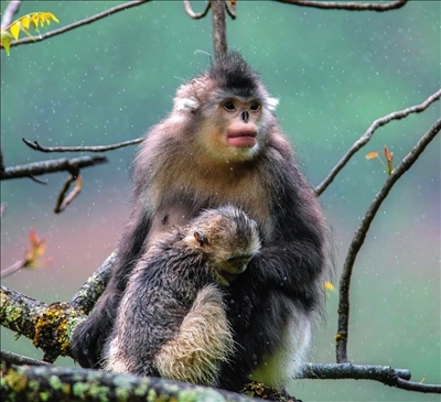 云南迪慶藏族自治州香格里拉滇金絲猴國家公園里的滇金絲猴(資料照片)胡超攝/本刊