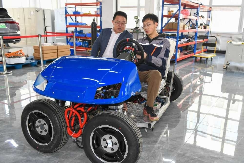 2024年3月13日,在吉林長(zhǎng)春一家汽車科技企業(yè),吉林大學(xué)汽車工程學(xué)院教授靳立強(qiáng)(左)試乘智能底盤樣車。2023年,長(zhǎng)春市科技局和吉林大學(xué)共建吉林大學(xué)概念驗(yàn)證中心,一手對(duì)接高校,一手對(duì)接企業(yè),確保科研成果在技術(shù)路線和商業(yè)模式上的可行性,實(shí)現(xiàn)“從0到1”的轉(zhuǎn)化。